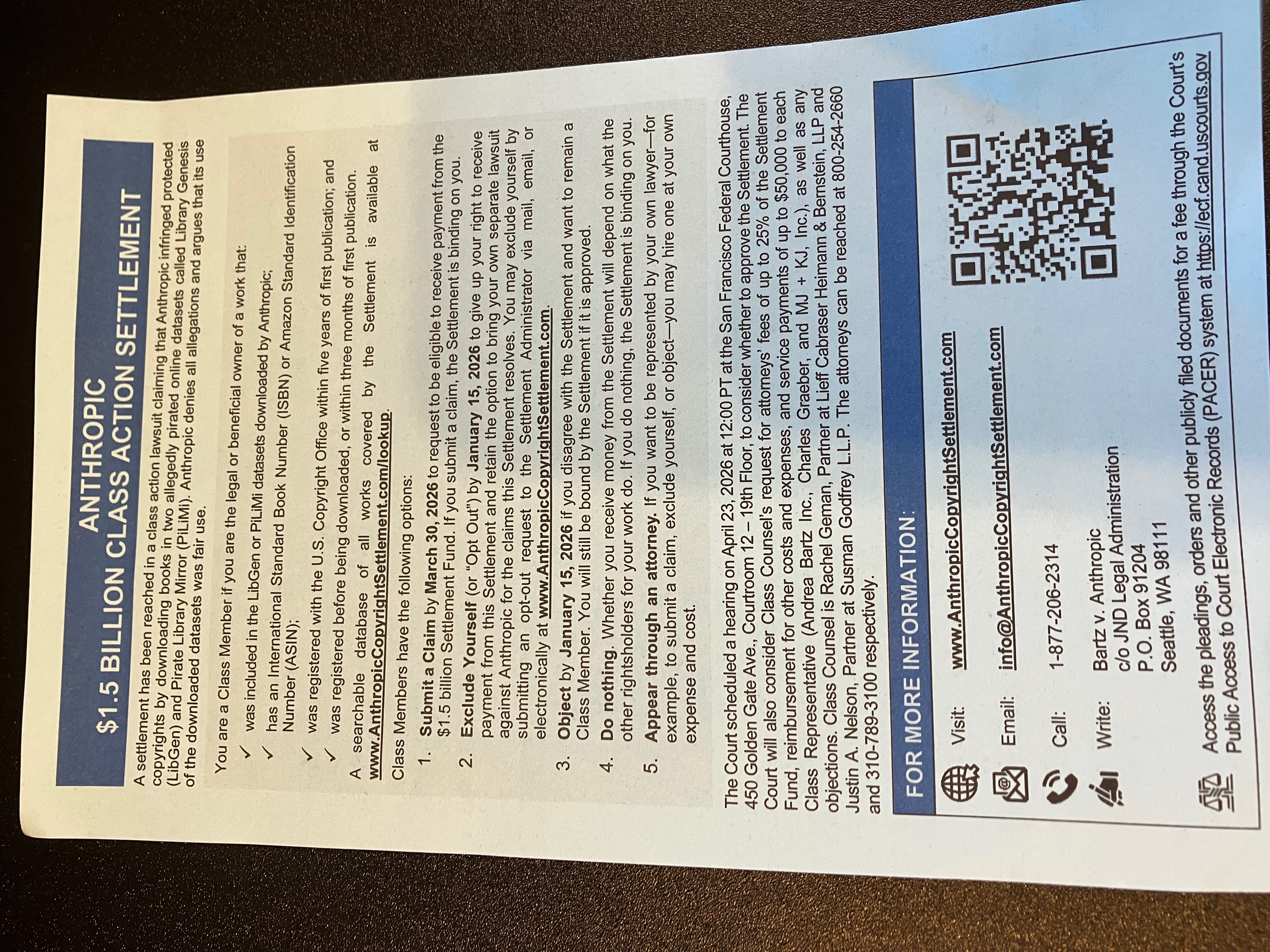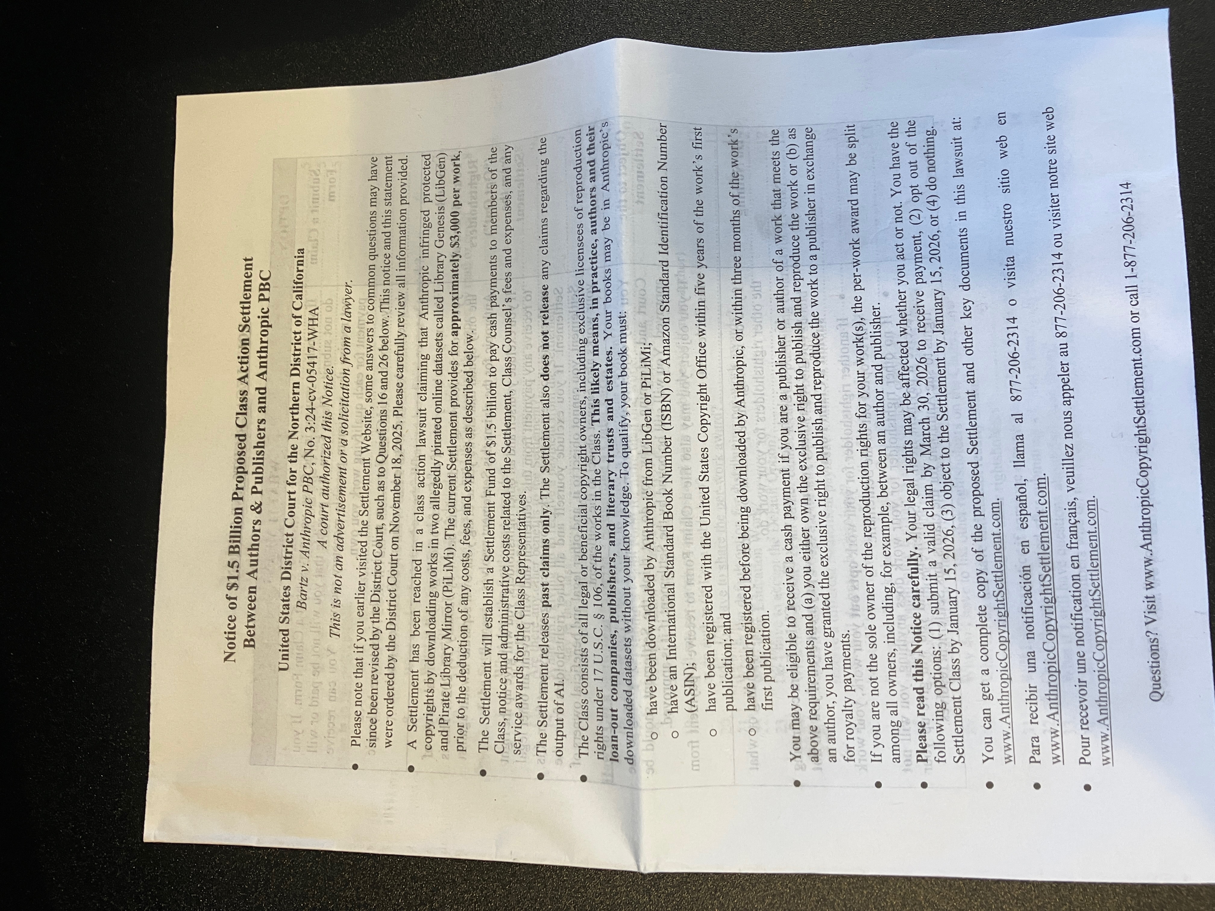 The official notice with your unique ID in the Bartz v. Anthropic settlement should have arrived at the end of November. Join Brenda Ulrich and Kim Pawlak for an update on how your unique ID will help you when filing claims, as well as other updates on the claims process and TAA's recommendations for textbook and academic authors whose works are included in the settlement.